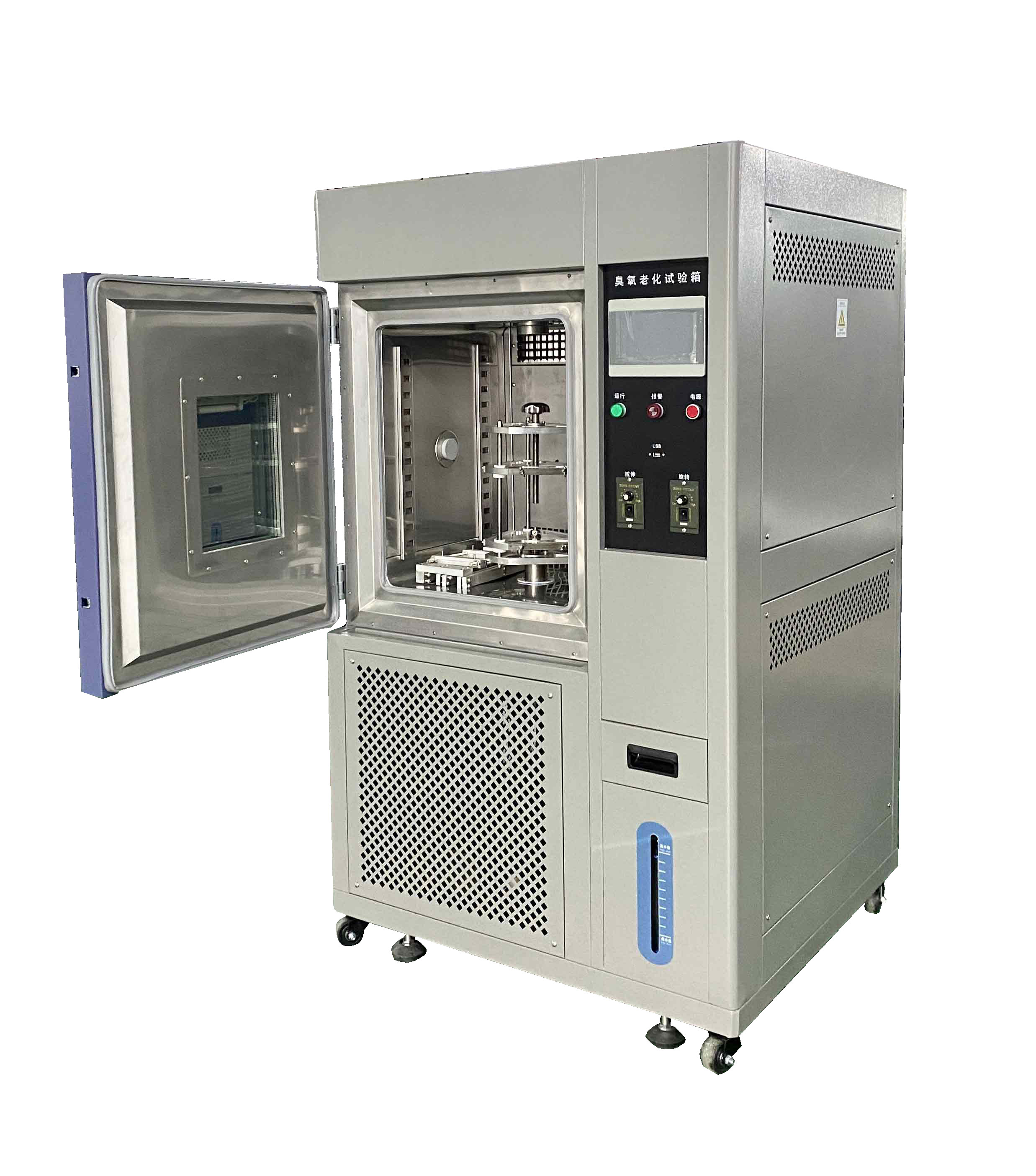 臭氧在大氣中的含量很少卻是橡膠龜裂的主要因素, 臭氧老化箱模擬和強化大氣中的臭氧條件,研究臭氧對橡膠的作用規律,快速鑒定利0評價橡膠抗臭氧老化性能與抗臭氧劑防護效能的方法,進而采取有效的防老化措施,以提高橡膠制品的使用壽命,參照標準:GB/T7762-2008、GB/T2951.21-2008。